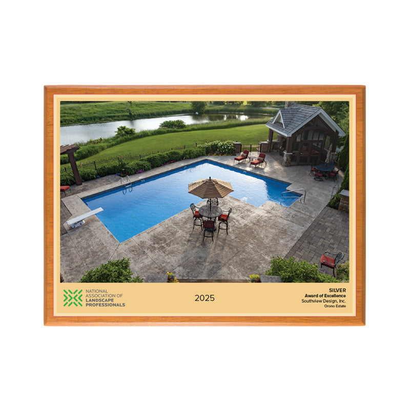 This photo plaque is designed to be displayed next to the Silver Award plaque that you received from NALP. The 9 x12" plaque is made from solid Mahogany and is designed to highlight a photo of your landscape project.  What better way to showcase your award-winning work? Made in USA. FSC®-certified (FSC-C019049).